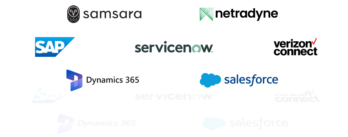 Easily integrate DynaRoute to range of top Enterprise Cloud, Telematics, ERPs and CRM platforms you are already using to serve optimization or service management requirements